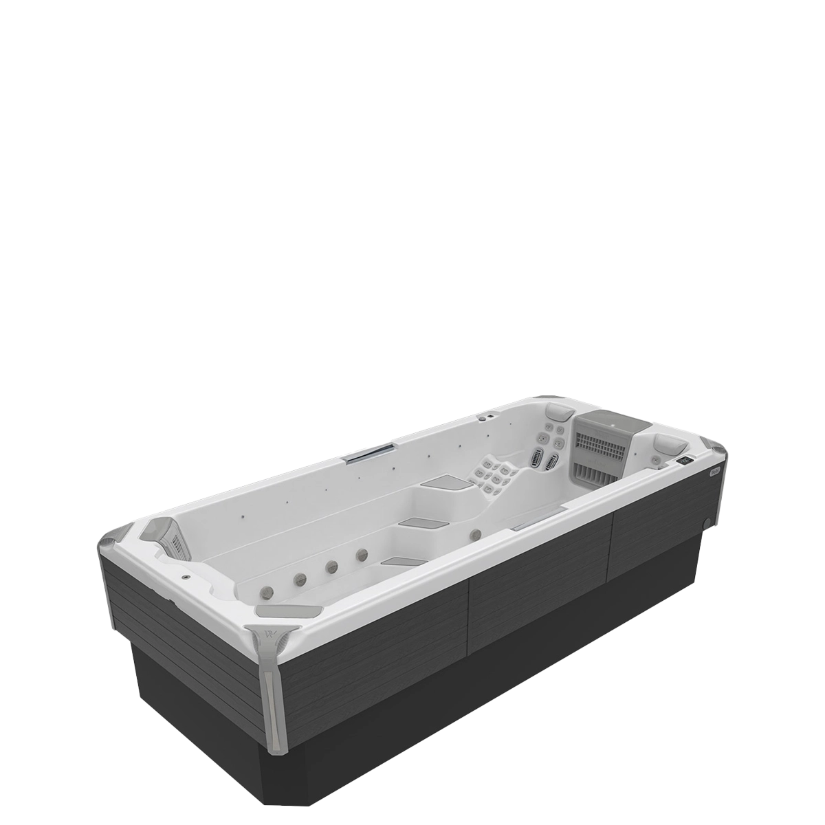 Cutting-edge technology, including the enhanced W-Flow countercurrent system for optimized swimming, ensures an unparalleled experience. Scandinavian insulation enhances energy efficiency, making it ideal for all climates. For added convenience, you can customize it further with a 3 kW heat pump and the integrated Smart-In Step.