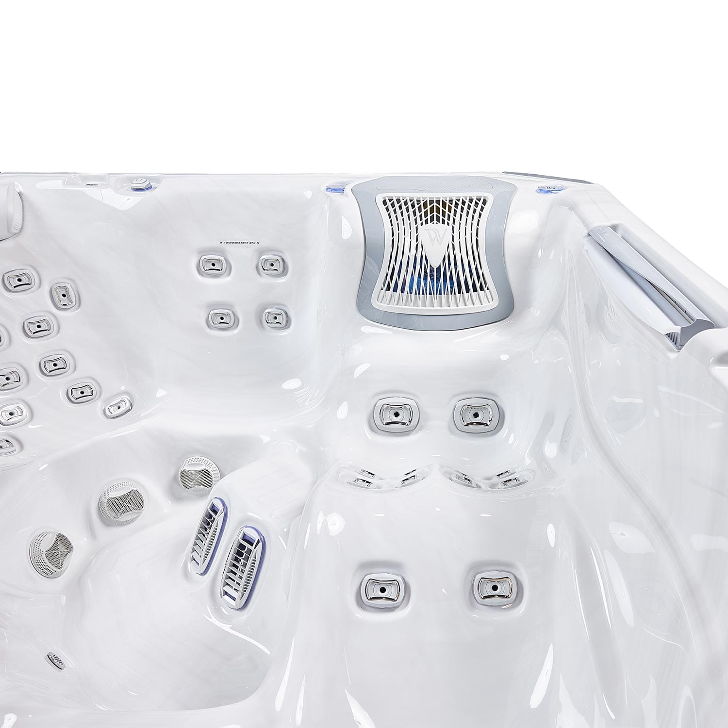 Maximum thermal insulation, minimal energy consumption. Seamlessly installed insulation panels and air pockets in the base plate effectively retain the water temperature, preventing heat loss. The internal heat-reflective foil reflects the heat generated by the massage motors, accelerating the water heating process. Experience unparalleled comfort and efficiency!