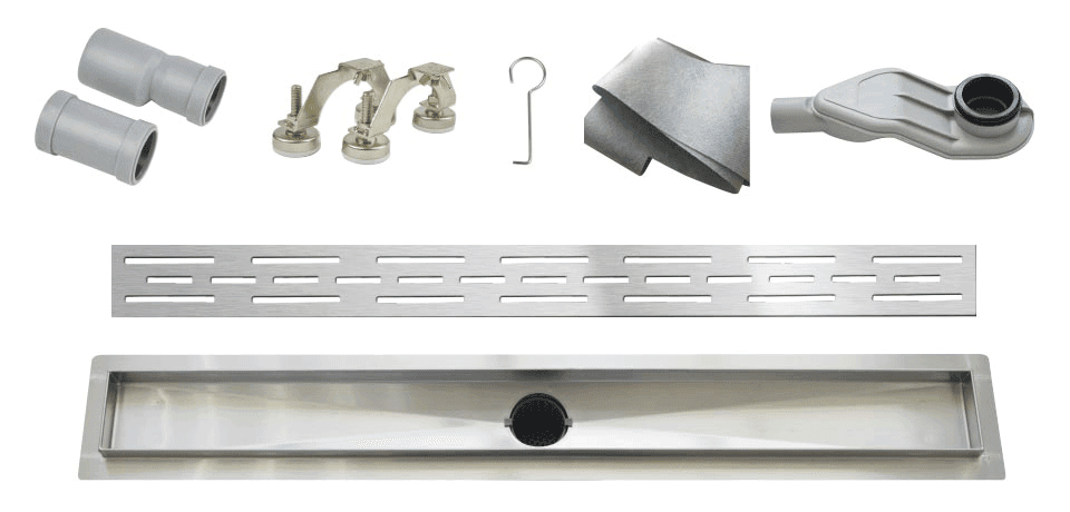 W-Drain premium stainless steel shower drain set, with Linear grid pattern.
